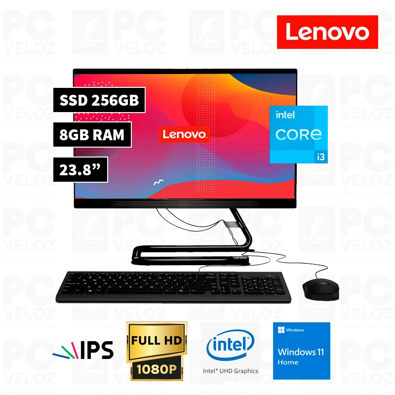 Lenovo IdeaCentre AIO – All in one / Core i3-10100T / 8GB RAM / 256GB SSD / 23.8″ FHD / Intel UHD Graphics / FreeDOS / NegroS/ 2,099.00